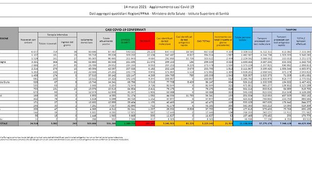 I numeri della pandemia Il totale delle terapie intensive torna a superare di nuovo le 3 mila unità. Il picco di ricoveri in rianimazione fu toccato il 3 aprile di un anno fa con 4.068 posti letto occupati. Nei reparti ordinari (pneumatologia e malattie infettive) sono invece aumentati i pazienti di 365 unità rispetto a ieri, portando il totale a 24.518.