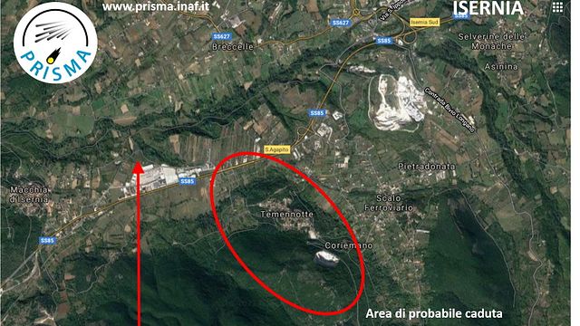 La sera del 15 marzo potrebbe essere caduto un meteorite di un chilogrammo in Molise. E' la conclusione cui sono giunti i ricercatori di Rete Prisma, coordinati dall'Istituto nazionale di astrofisica, dopo una serie di calcoli svolti negli ultimi giorni in seguito all'apparizione di un bolide nei cieli dell'Italia centromeridionale. Il frammento, in base alle stime, dovrebbe essere precipitato nei pressi della località di Temennotte, nel comune di Sant'Agapito (Isernia).