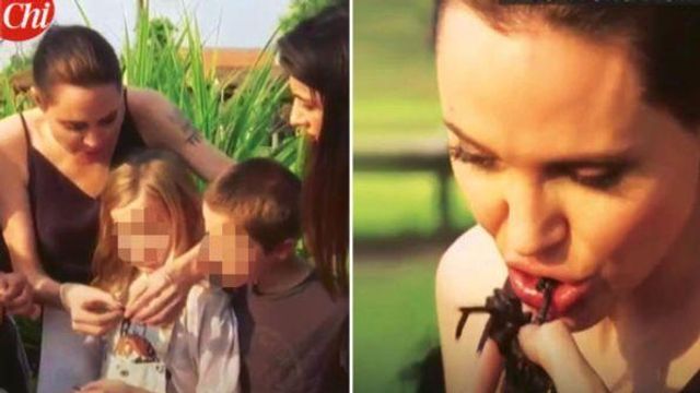 Dieta proteica a base di insetti per Angelina Jolie e i suoi sei figli che in Cambogia hanno assaporato tarantole e grilli fritti cucinati proprio dall'attrice. "Chi" mostra le immagini di Vivienne che abbozza uno smorfia di disgusto, anche se alla fine si lascia convincere dal ragno...