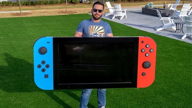 La console sovradimensionata è opera di Michael Pick, ingegnere di Nashville, Tennessee, che ha condiviso un video dettagliato del suo enorme progetto su YouTube. Con dimensioni pari a 177 per 76 cm e un peso di quasi 30 kg, la console è risultata essere il 650% più grande di una normale Nintendo Switch. "Adoro la Nintendo Switch. È piccola, portatile... ma è davvero facile da smarrire, e per me questo poteva costituire un problema", ha raccontato Pick. "Così ho deciso di rimediare facendo qualcosa che fosse un po' più grande e un po' più difficile da perdere".