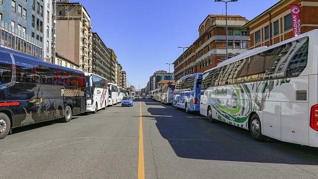 Protesta dei noleggiatori di pullman a Milano. Sono circa 200 gli autobus fermi in una delle vie vicine alla sede di Regione Lombardia a Milano per chiedere un incontro all'assessore ai Trasporti, Claudia Maria Terzi. "Siamo dimenticati dal governo. Siamo fermi da 14 mesi - ha spiegato Marco Perico vicepresidente settore autobus della Federazione autonoleggiatori italiani -. Siamo con l'acqua alla gola, chiediamo la possibilità di mantenerci in vita".