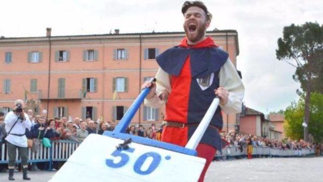 La cornice è il borgo di Fermignano, in provincia di Pesaro e Urbino, la data da segnare in calendario è il fine settimana da venerdì 21 e domenica 23 aprile: l’occasione è il Palio della rana, in cui il piccolo anfibio abbandona il suo stagno per trasferirsi a bordo di una spericolata carriola, sulla quale viene trasportata di gran carriera, ma con ogni onore e tra le risate generali, fino al traguardo per assicurare alla propria contrada l’ambito stendardo.