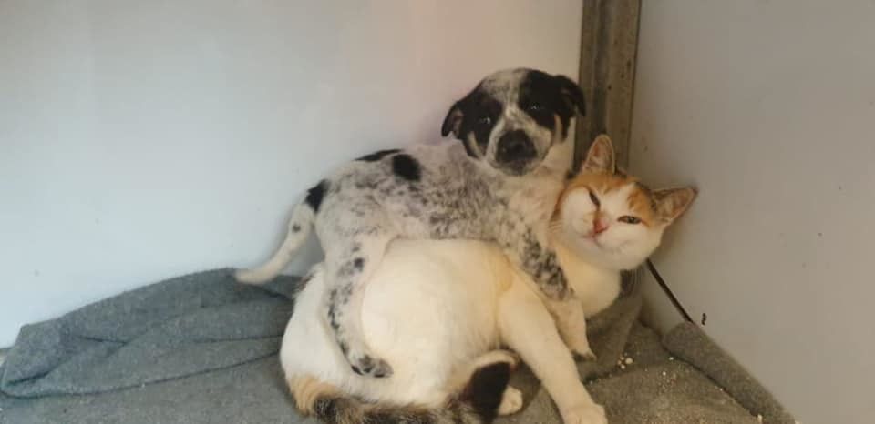 Cucciolo di cane adottato dalla gatta Alina: favola a lieto fine nel santuario dei felini di Aleppo