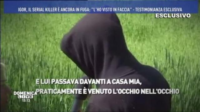 Non vuole essere ripreso, perché teme possibili ritorsioni. Ma la paura non gli ha comunque impedito di fare il proprio dovere civico e di denunciare quanto gli è accaduto. "Ho visto Igor il russo" dice questo testimone ai microfoni di "Domenica Live" - "Proprio ieri sera. Ero in giardino, stavo giocando con il mio cane. Lui è passato davanti al cancello, di corsa, ci siamo guardati negli occhi e poi si è messo a correre".