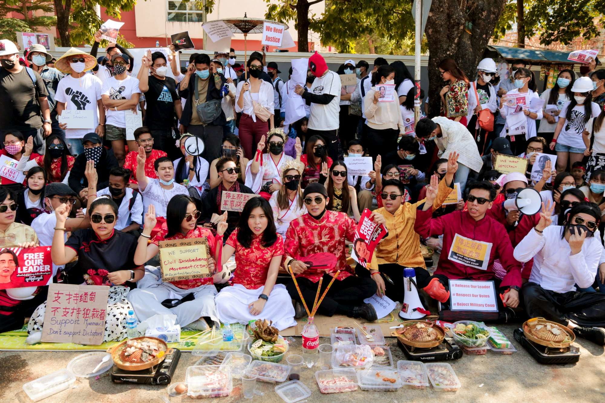 Paing Takhon, che oltre a partecipare alle proteste personalmente era anche attivo sui social prima che le autorità chiudessero i suoi account, è stato arrestato mentre si trovava a casa di sua madre nell'area di North Dagon a Yangon. Intanto i militari hanno pubblicato una lista di circa 120 personaggi dello spettacolo ricercati.