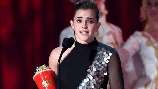 Emma Watson ha tenuto un discorso di ringraziamento appassionato: "Sento di dover dire qualcosa a proposito di questo premio, il primo premio nella storia che non distingue i nominati per il loro sesso. La mossa di MTV di creare un premio senza distinzioni di genere per me significa che recitare vuol dire sapersi mettere nei panni di qualcun altro e che questo non ha bisogno di essere diviso in categorie. L'empatia e la capacità di utilizzare la propria immaginazione non dovrebbero avere limiti. Questo è molto importante per me, sia aver vinto questo premio che riceverlo da voi in modo così affettuoso e amorevole. Grazie mille".