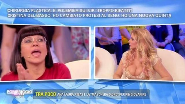 A "Pomeriggio 5" si parla del boom di interventi chirurgici in vista della stagione estiva e, tra gli ospiti, figurano anche le showgirl Cristina Del Basso e Francesca Cipriani, che, come è noto, non hanno mai negato di aver fatto ricorso al bisturi per rendere "esplosive" alcune parti del loro fisico.