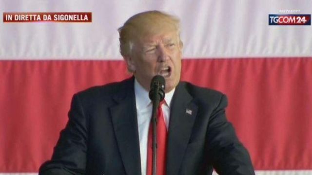 "Voglio esprimere a nome degli Stati Uniti gratitudine nei confronti dei nostri alleati italiani e della Nato. Voi vi trovate nel crocevia del Mediterraneo e lavorate con noi fianco a fianco contro l'instabilità in Africa settentrionale e Medio Oriente". Lo ha detto il presidente americano, Donald Trump, parlando a Sigonella dopo il G7. "Ho spinto per una maggiore sicurezza sul fronte dell'immigrazione al fine di proteggere i nostri cittadini".