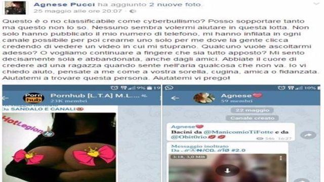 "Questo è o no classificabile come cyberbullismo? Posso sopportare tanto ma questo non lo so. Nessuno sembra volermi aiutare in questa lotta": inizia così un lungo messaggio, pubblicato da Agnese Pucci, 21enne di Carmignano, in provincia di Prato, sulla sua bacheca Facebook. La giovane ha raccontato alla polizia postale di essere vittima di cyberbullismo, e di ricevere continue molestie sessuali, dopo che qualcuno ha pubblicato, in alcune chat di Telegram, il suo numero di cellulare correlato a immagini della sua faccia e di ragazze nude che le somigliano.