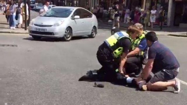 Secondo la polizia britannica, non si tratta di un attacco terroristico. "Gli agenti hanno arrestato l'uomo per disordine pubblico e perché possedeva un'arma", hanno spiegato le forze dell'ordine.