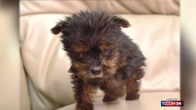 E' talmente piccolo che, dopo sette settimane di vita, pesa solo 255 grammi e potrebbe entrare in un barattolo di fagioli. Tiny Tim, un Yorkshire Terrier nato in Inghilterra, è diventato la mascotte del locale gestito dalla sua padrona, che lo ha accudito come un figlio. "Sono sorpresa sia ancora in vita, quando è nato ho dovuto rianimarlo perché non respirava" ha raccontato orgogliosa la donna che ogni giorno lo porta con sé al lavoro.