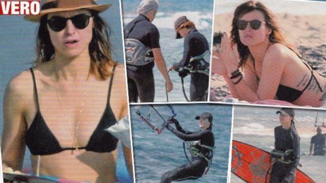 Gli sport estremi sono la sua passione e insieme al compagno Domenico Procacci la bellissima Kasia Smutniak si dedica al kitesurf in Salento davanti allo sguardo di Leone, il loro bambino. In pausa dalle riprese di "Made in Italy", di Luciano Ligabue, l'attrice con un bikini nero sfoggia una linea invidiabile mentre si rilassa al sole sdraiata sulla sabbia.