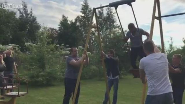 Sembra solo l'ennesima follia e, invece, è addirittura uno sport nazionale: stiamo parlando del "Kiiking", ossia della rotazione a 360 gradi su una comune altalena. Inventato in Estonia nel 1996, è stato addirittura esportato in occasione di Expo2015 a Milano. Nel padiglione dedicato, infatti, venne esposta un'altalena con le braccia di oltre 7 metri - più sono lunghe e più è complicato ottenere buoni risultati - con l'obiettivo di battere il record mondiale di un giro di 360 gradi con un'altezza di 7,3 metri. Non è consigliabile, comunque, da provare da soli nel giardino di casa. Nel video in questione, infatti, il temerario che prova a fare il numero vola rovinosamente contro il muro.