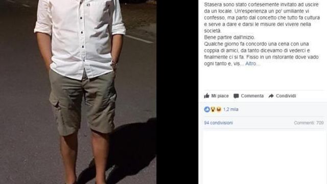 La cena con gli amici al ristorante sul porto rovinata da un paio di bermuda. Cacciato dal locale per l'abbigliamento poco consono: protagonista della vicenda il sindaco di Viareggio (Lucca) Giorgio Del Ghingaro, che ha raccontato in un post di Facebook la disavventura. Un'esperienza "un po' umiliante", "spiacevole" e "sgradevole", riferisce, spiegando anche di aver avuto "la brutta sensazione di aver subito una piccola violenza" e postando la foto che lo ritrae in bermuda col commento: "Ma poi, detto tra noi, ero vestito così male?". E all'accusa che non ci fosse un avviso all'ingresso, risponde il locale: "Il regolamento del circolo prevede un 'dress code', riportato inoltre in due cartelli affissi al pubblico: tra le indicazioni solo pantaloni lunghi dopo le 19". Tra l'altro l'Amministrazione ha appena varato una stretta sul decoro in città: vietato girare in costume o a torso nudo.