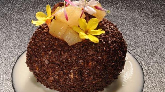 Adagiare la sfera sullo yogurt decorare con fiori.