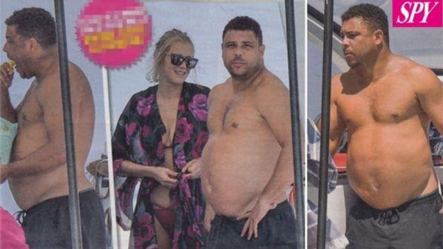 Per tutti l'attaccante brasiliano era il Fenomeno. A distanza di pochi anni, le sue prodezze in campo sono solo un lontano ricordo. Ronaldo Luís Nazário de Lima, 40 anni, se la spassa alla Baleari con le figlie e la sua compagna, professione modella, dalla quale si stacca solo per far rifornimento di cibo spazzatura e fumare, vizi che per il bene della sua salute dovrebbe contenere. Poi i due tornano ad avvinghiarsi prima di fare un tuffo di coppia in acqua e scambiarsi un bacio appassionato.