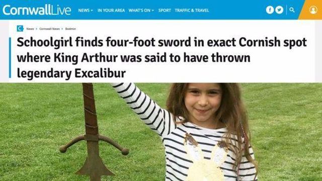 Una bimba inglese di 7 anni ha ritrovato una spada antica di circa un metro e 20 centimetri nelle acque del lago Dozmary Moor, in Cornovaglia. La curiosa scoperta torna ad alimentare il mito di Excalibur. Secondo la leggenda, infatti, nello stesso specchio d'acqua re Artù, ormai morente dopo il duello con Modred, ordinò a uno scudiero di gettare l'arma. La storia narra che la spada venne afferrata dalla "fata del lago" che la portò con sé sul fondo.