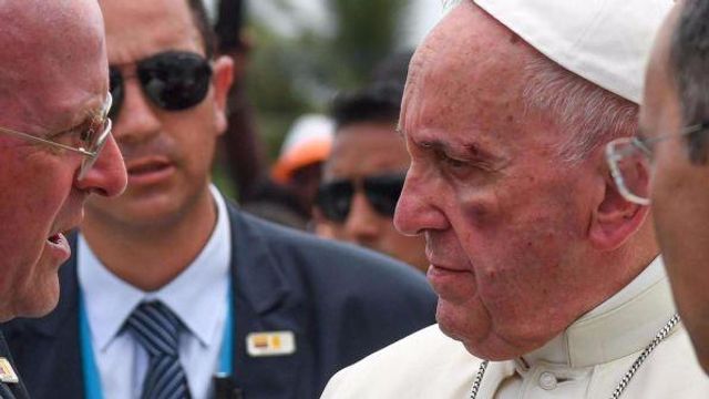 Papa Francesco ha riportato una contusione al viso urtando contro il montante della papamobile, quando la vettura ha dovuto frenare improvvisamente per la folla acclamante. Nelle immagini arrivate da Cartagena, in Colombia, Bergoglio presenta una contusione allo zigomo sinistro e un piccolo taglio sull'arcata sopraccigliare. Tracce di sangue sono evidenti anche sulla veste papale. Il Pontefice è stato subito medicato dallo staff.