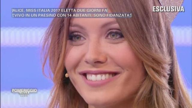 Si dice più emozionata adesso, sotto le telecamere di Pomeriggio 5, che la sera della finale di Miss Italia 2017, dove ha trionfato. Alice Rachele Arlanch, 21 anni, trentina, nuova reginetta di bellezza, si racconta seduta di fronte a Barbara D'Urso. Entra in studio sorridente, gli occhi che le brillano e un abbigliamento molto semplice: top bianco e pantaloni aderenti neri. “Vivo in paesino di 14 abitanti, adesso 13, perché ora me ne andrò, dove non c’è nemmeno una tabaccheria”. Poi parla del fidanzato Andrea, di Rovereto: “Stiamo insieme da un anno e mezzo, ma ci conosciamo fino dalle scuole superiori. Lui è uno studente universitario di 22 anni, è molto bello e intelligente e mi ha sempre sostenuta”.
