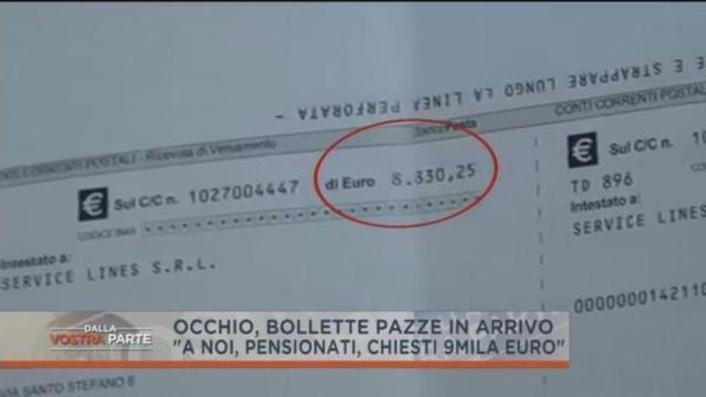 Quando il conto del gas toglie il respiro... e svuota le tasche! E' il caso, clamoroso, di Leonardo, un ferroviere in pensione di 74 anni, che vive da quasi dieci anni un'odissea legale, a causa di una bolletta del gas spropositata: quasi 9mila euro!!! La colpa? La sotituzione di un contatore del gas e l'errata lettura comunicata all'ente erogatore: ben 11.168 metri cubi consumati in tre mesi. Una cifra ciclopica! Ancora oggi, incredulo, l'uomo racconta la vicenda su Rete 4 a Dalla Vostra Parte: "Quando ho aperto la bolletta mi è preso un colpo, mia moglie ha cambiato colore in volto! Il consumo riportato corrisponderebbe, al massimo, all'utilizzo del servizio da parte mia in non meno di quarant'anni!". L'ente, da sette anni, non solo non gli restituisce un euro, ma lo tempesta di telefonate e raccomandate per il recupero crediti. Una situazione insostenibile, che verrà risolta soltanto in un'aula di tribunale.