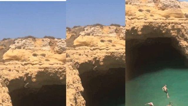 Di fronte a un mare cristallino e a una scogliera invitante sono pochi gli amanti dei tuffi dalle grandi altezze che saprebbero resistere a una tentazione del genere. Così anche il protagonista di questo video si è voluto lanciare in acqua dopo aver preso una lunga rincorsa. Peccato, però, che il malcapitato sia finito in una barca di turisti che passava nella zona sottostante proprio in quel momento. Il video, proveniente dal Portogallo, mostra le immagini del violento incidente che per fortuna non ha riportato gravi conseguenze. Il tuffatore se la sarebbe cavata "solo" con la frattura di un braccio e l'insegnamento di dare sempre un'occhiata all'acqua prima di lanciarsi!