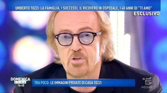 Per la prima volta a Domenica Live torna Umberto Tozzi. Dopo il malore che l’ha costretto in ospedale il cantante racconta la sua esperienza: “Improvvisamente ho avuto questo malessere, ma nessuno credeva che si sarebbe trasformato in un intervento di 5 ore. Pensavano fosse una semplice peritonite che doveva durare 40 minuti e invece è stato un delirio”. Il cantante ha poi raccontato che avrebbe voluto salire comunque sul palco quella sera ma “Mi hanno fatto desistere dal fare quel concerto. Mettermi davanti alla situazione mi ha aperto gli occhi. Mi è dispiaciuto rimandare lo spettacolo ma lo recuperiamo però. Voglio ringraziare anche gli artisti che hanno capito il mio malessere e hanno acconsentito a tornare il 14 ottobre a cantare con me all’Arena di Verona per i 40 anni di "Ti Amo”, ha sottolineato il cantante.