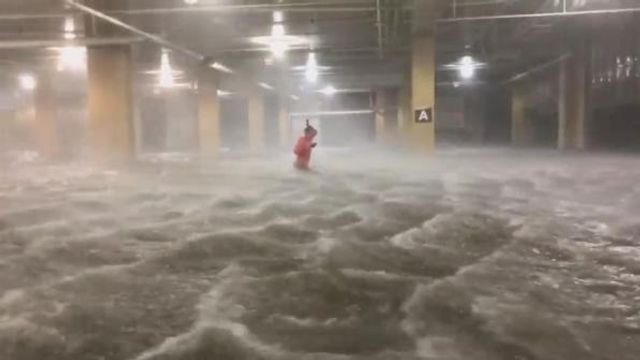 Dopo aver causato almeno 22 vittime sotto forma di tempesta tra Costa Rica, Nicaragua e Honduras, Nate si è trasformato in un vero e proprio uragano e ha toccato terra una prima volta vicino alla foce del fiume Mississippi, in Louisiana, e una seconda volta a Biloxi, città situata nello stato del Mississippi. Qui il cacciatore di tempeste Mike Theiss ha ripreso la situazione all'interno di un parcheggio completamente allagato dalla forte mareggiata, dove onde e vento fanno da assoluti protagonisti della clip pubblicata poi sull'account Twitter dello stesso Theiss. Nonostante la forza di Nate sia attualmente diminuita, negli Stati Uniti resta ancora una situazione di emergenza: sono state ordinate evacuazioni lungo la costa centrale del Golfo del Messico e la guardia nazionale statale in Louisiana ha mobilitato oltre mille unità per permettere il trasporto da Baton Rouge a New Orleans.