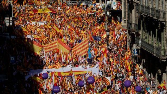 La Catalogna si è fermata a mezzogiorno per protestare contro l'arresto deciso lunedì da una giudice spagnola dei leader indipendentisti Jordi Sanchez e Jordi Cuixart. In tutte le città ci sono state manifestazioni spontanee davanti ai municipi e ai luoghi di lavoro. A Barcellona migliaia di persone si sono ritrovate in piazza Sant Jaume, davanti alla sede del Govern cantando "Libertat!" e Els Segadors. Presente anche il presidente Puigdemont.