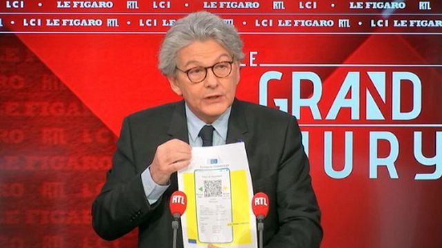 Il commissario Ue per il Mercato interno, Thierry Breton, ha annunciato che il certificato verde che permetterà di viaggiare dimostrando l'avvenuta vaccinazione sta "procedendo velocemente sotto il profilo tecnico e legislativo" e "dal 1 giugno sarà pronto". Breton ha spiegato che il pass (che funzionerà tramite app) andrà agli Stati membri i quali potranno "iniziare a editarlo e implementarlo" per raggiungere "a luglio" la piena operatività.