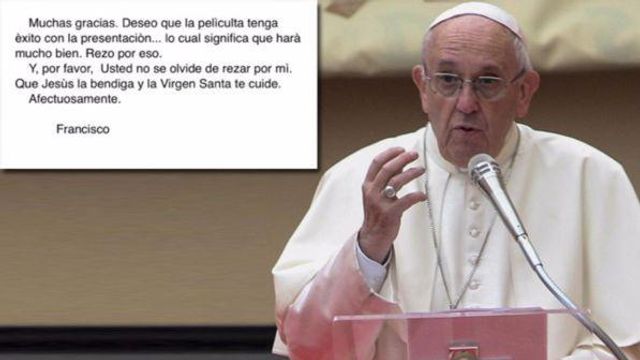 "Prego perché il film vada bene. Per favore non dimentichi di pregare per me, che Gesù e la santa Vergine la benedica. Affettuosamente, Francesco" ha concluso Bergoglio.