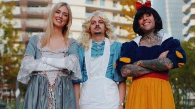 Per la coppia social non può mancare la foto ricordo di Halloween, così anche se in ritardo di un giorno Fedez e Chiara Ferragni si travestono. Il rapper da Biancaneve e la fashion blogger da Cenerentola. Tra loro si intrufola anche l'amico Rovazzi con una folta acconciatura bionda. "Questo sarà il padre di mio figlio", cinguetta Chiara mostrando il rapper di spalle con mutande a vista.