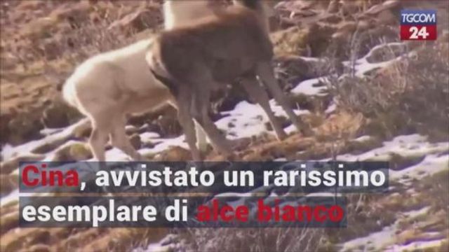 Un piccolo alce che si aggira con il suo branco è stato avvistato in Cina, nella regione del Qinghai. Non ci sarebbe nulla di straordinario se l'animale in questione non fosse completamente bianco, rientrando così di diritto tra i rarissimi esemplari che si distinguono per questa caratteristica. Così un gruppo di ricercatori ha ripreso il particolare animale, registrando il primo avvistamento di questa specie nel paese orientale. Come ha spiegato Liu Wei, uno dei ricercatori, si tratterebbe di una forma di albinismo solo nel caso in cui i suoi occhi siano rossi, altrimenti non ci sarebbe nessuna malattia nell'animale. Un esemplare simile era stato avvistato ad agosto in Svezia, dove si conterebbero circa un centinaio di alci bianche.