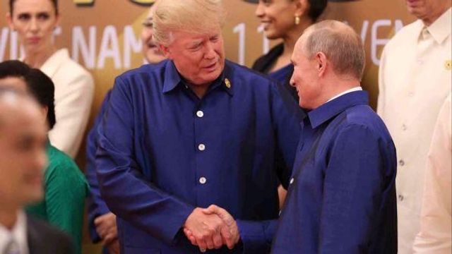 L'occasione d'incontro si è presentata durante la fotografia ufficiale in costumi tradizionali. Dopo lo scambio di commenti, Trump si è alzato e ha messo una mano sulla spalla del presidente russo, quando tutti gli altri cominciavano a disperdersi.