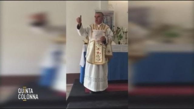 "Siate fascisti, combattete e morite per quelli che sono i fondamenti della civilità: Dio, Patria, Famiglia". Quest'inno al fascismo viene da chi e da dove meno te lo aspetti: in chiesa, da un prete. Lui è padre Giulio Maria Tam, il sacerdote ultra-fascista legato a Forza Nuova e già scomunicato dal Vaticano. Nonostante questo, da anni va avanti nei suoi proseliti e partecipa alle manifestazioni dell'estrema destra in tutta Italia. Su quell'altare, dove in realtà dovrebbe celebrare messa, sviluppa le sue orazioni, orgoglioso della marcia su Roma, come dichiara ai fedeli presenti. "Il fascismo è una dottrina, una cultura, uno stile di vita. Abbiamo dato Dio all'Italia e l'Italia a Dio, cercate nella storia del nostro Paese un altro uomo politico che ha ricevuto queste parole dal romano Pontefice".