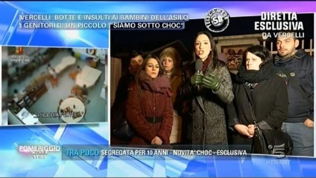 Schiaffi e botte ai bimbi in un asilo di Vercelli: arrestate tre maestre. A Pomeriggio Cinque parla Antonietta la mamma di uno dei piccoli maltrattati nella scuola Korczak che è stato trasferito prima dell’avvio ufficiale della denuncia: “Mio figlio mi ha raccontato che la maestra Carmela l’aveva picchiato e quando sono andata da lei per chiedere delucidazioni lei mi ha aggredito verbalmente, anche in maniera pesante. Mi ha urlato contro dicendo che sia io che mio marito l’avremo pagata per questa voce che stavamo mettendo in giro. Allora io ho deciso di ritirare mio figlio da quella scuola e sono andata dalla preside”.
