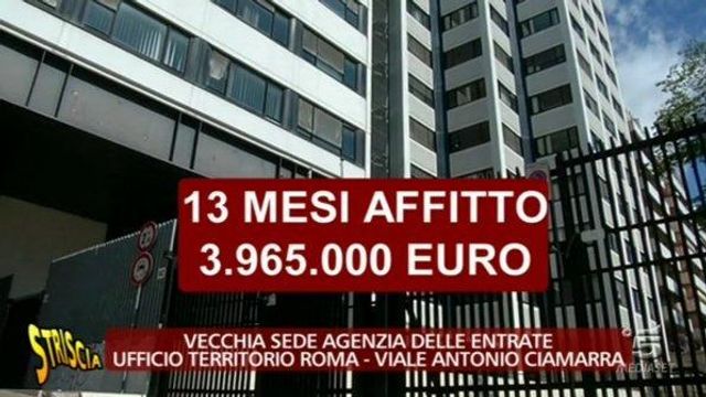 Prosegue la battaglia di "Striscia la Notizia" contro gli sprechi dell'Agenzia delle Entrate. Dopo aver lasciato la vecchia sede romana di viale Antonio Ciamarra, l’ente continua infatti a pagarne l’affitto da tredici mesi. E considerato che il canone mensile è di 305mila euro al mese, lo spreco accumulato in questo lasso di tempo ha raggiunto la modica cifra di 3milioni 965mila euro. Ma non è tutto, perché dopo le insistenze dell’inviato del tg satirico Riccardo Trombetta, l’Agenzia ha risposto che essendoci un contratto sono costretti a pagare questi soldi fino al 2022. Ovvero altri quattro anni di soldi pubblici letteralmente buttati.