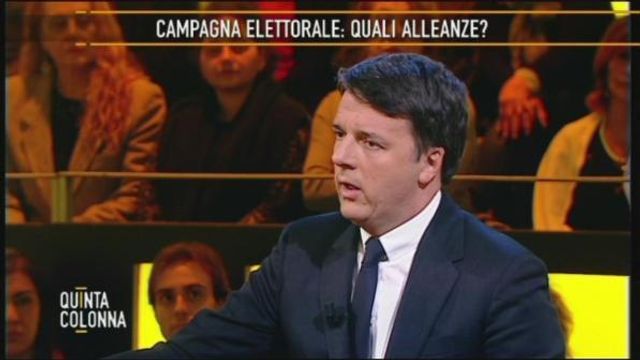 È un Matteo Renzi a tutto campo quello intervistato da Paolo Del Debbio a Quinta Colonna. Da "Destinazione Italia" alle avanzate delle destre, senza dimenticare temi quali tasse, pensioni e le alleanze in vista delle prossime elezioni. E il segretario del Pd è partito proprio da quest’ultimo aspetto: "Noi andremo alle elezioni con una lista di centro, anche se Alfano non sarà candidato, con una lista di sinistra, anche se Pisapia non sarà candidato e poi vedremo se ci saranno anche altri: spero si possa fare l'accordo con la lista +Europa di Bonino, Della Vedova e Magi".
