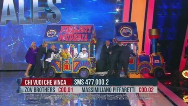 La Scuderia Scotti ha mandato letteralmente in tilt la finale di Tu Si Que Vales, il talent di Canale 5 arrivato al suo ultimo appuntamento. Il primo ad esibirsi è Antonio, il cantante giravolta, che si lancia letteralmente sui giudici del talent. Finita la sua performance il trenino con gli altri "talenti" è pronto a ripartire ma qualcosa va storto e il treno non parte. "Ragazzi ma si è rotto il treno per caso?", chiede imbarazzata Belen. Immediata la reazione di Capitan Scotti che chiama a raccolta i suoi colleghi e si mette a spingere la locomotiva. "Praticamente ho fatto tutto io", dice scherzando Martin Castrogiovanni abituato a certi sforzi. "Scusate ma la scuderia ha finito i soldi per il gasolio", chiosa Scotti.