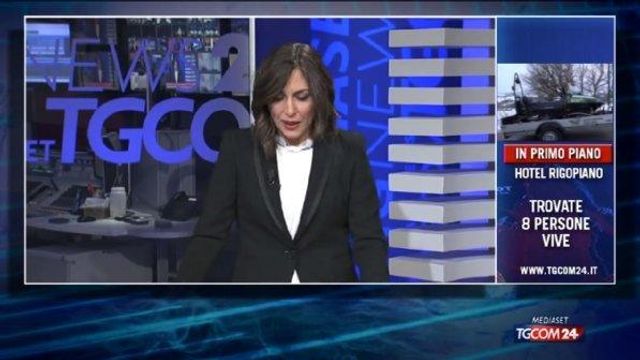 "Vi dobbiamo dare una bella notizia dell'ultima ora, stanno arrivando i lanci di agenzia: sei persone secondo quanto si apprende sono state individuate vive proprio in questi istanti." Quando sono arrivati i primi comunicati la conduttrice di Tgcom24 Micaela Nasca non è riuscita a trattenere l'emozione e per questo motivo l'annuncio del ritrovamento di alcuni dispersi dopo la valanga sull'hotel Rigopiano viene spesso interrotto dalla commozione della giornalista.