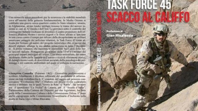 Arriva in libreria "Task Force 45, Scacco al “Califfo" del giornalista palermitano Giampiero Cannella, già deputato e componente delle Commissioni difesa e Alpi (160 pagine, Luca Poggiali editore, 15 euro). Protagoniste del volume sono le forze speciali che lavorano nell'ombra per debellare il terrorismo internazionale. In particolare, vengono raccontati da vicino gli uomini della Task Force 45, il reparto che ha realmente operato in Afghanistan insieme agli altri alleati della Nato.