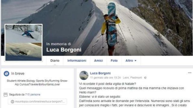Luca Borgoni era morto scivolando sul Cervino, l'8 luglio scorso, durante una scalata, a soli 22 anni e sua mamma Cristina aveva cercato di mantenerlo in vita in diversi modi: discutendo la sua tesi di laurea in biologia, appena due settimane dopo l'incidente, e continuando ad aggiornare il suo profilo Facebook. Adesso il social network ha deciso di congelare quest'ultimo trasformandolo in una pagina commemorativa.