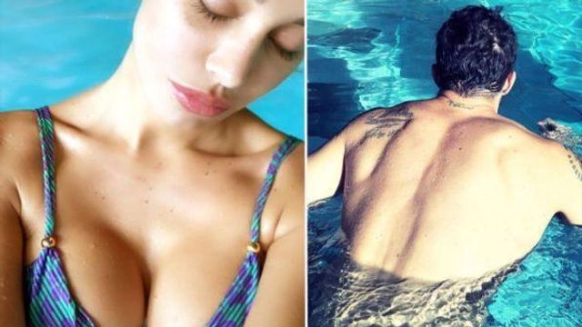 Colazione in camera, vista mozzafiato sulle montagne e una piscina a disposizione per sé, Santiago e Andrea. Dopo uno zoom sul seno perfetto con un selfie ad occhi chiusi in bikini immersa in acqua, la showgirl questa volta si regala una foto di coppia con il suo bambino. Con Iannone al momento nessuno scatto di coppia (loro preferiscono così), ma uno di schiena mette in luce muscoli e tatuaggi del suo pilota.