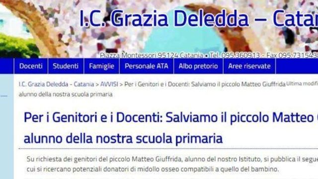 "I potenziali donatori - si legge nel testo pubblicato sul sito dell'istituto - devono recarsi in un centro Admo (associazione donatori midollo osseo) per eseguire gratuitamente un test di compatibilità che consiste in un semplice prelievo di sangue, necessario per la tipizzazione e l'immissione nella banca dati. In seguito - prosegue la nota sul sito della scuola - i potenziali donatori (più saranno, più aumenterà la possibilità di trovare quello perfetto) risultati idonei saranno contattati per confermare la disponibilità alla donazione per consentire a Matteo di essere sottoposto a questo delicato intervento".