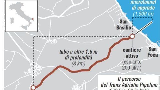 Via libera da parte della Banca europea per gli investimenti a un maxi prestito da 1,5 miliardi di euro per la realizzazione del gasdotto Tap, che attraverserà Grecia, Albania e Mar Adriatico per poi raggiungere l'Italia e connettersi alla sua rete di gas naturale. Il finanziamento è stato concesso, dopo "discussioni dettagliate", perché la Trans-Adriatic Pipeline rientra tra i progetti energetici strategici dell'Ue.