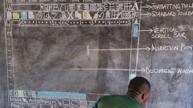 Non mancano certamente fantasia e spirito di iniziativa a Owura Kwadwo, maestro in Ghana. Dopo aver studiato grafica, il docente ha deciso di mettere a frutto le sue abilità insegnando agli studenti la creazione di un documento word senza computer ma disegnando alla lavagna uno screenshot da copiare e imparare. Da quando il suo post su Facebook è diventato virale, Kwadwo ha ricevuto molte offerte per comprare computer e materiale didattico.