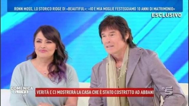 Ronn Moss, lo storico Ridge di Beautiful e sua moglie Devin sono ospiti di Domenica Live. La coppia racconta la loro fantastica storia d'amore. L'attore e musicista statunitense, noto per aver interpretato per tantissimi anni il ruolo di Ridge Forrester nella soap opera Beautiful, si è presentato in studio con la moglie Devin DeVasquez. Ronn Moss e sua moglie hanno mostrato al pubblico una serie di foto inedite riguardanti la loro vita privata e l'attore ha poi commentato: "Quando trovi la persona giusta è fatta, io ci ho messo un po' ma alla fine ci sono riuscito".
