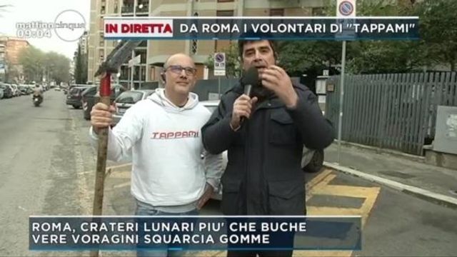 Emergenza buche a Roma? Sono i cittadini stessi a rimboccarsi le mani e a sistemarle. A Mattino Cinque parlano in diretta i volontari di "Tappami", associazione che gira per la Capitale a riempire le buche con bitume di alta qualità e resistenza. Ai microfoni del programma parla Cristiano Davoli: "Stiamo cercando di sistemare il manto stradale, municipio per municipio, con del materiale che ci forniscono gratuitamente”. Il volontario mostra con quanta semplicità e velocità è possibile sistemare il problema: basta versare questo asfalto a freddo direttamente sulla buca, dopodiché al semplice passaggio di un’auto dopo aver posato il materiale la buca si “autoripara” grazie al peso del veicolo.