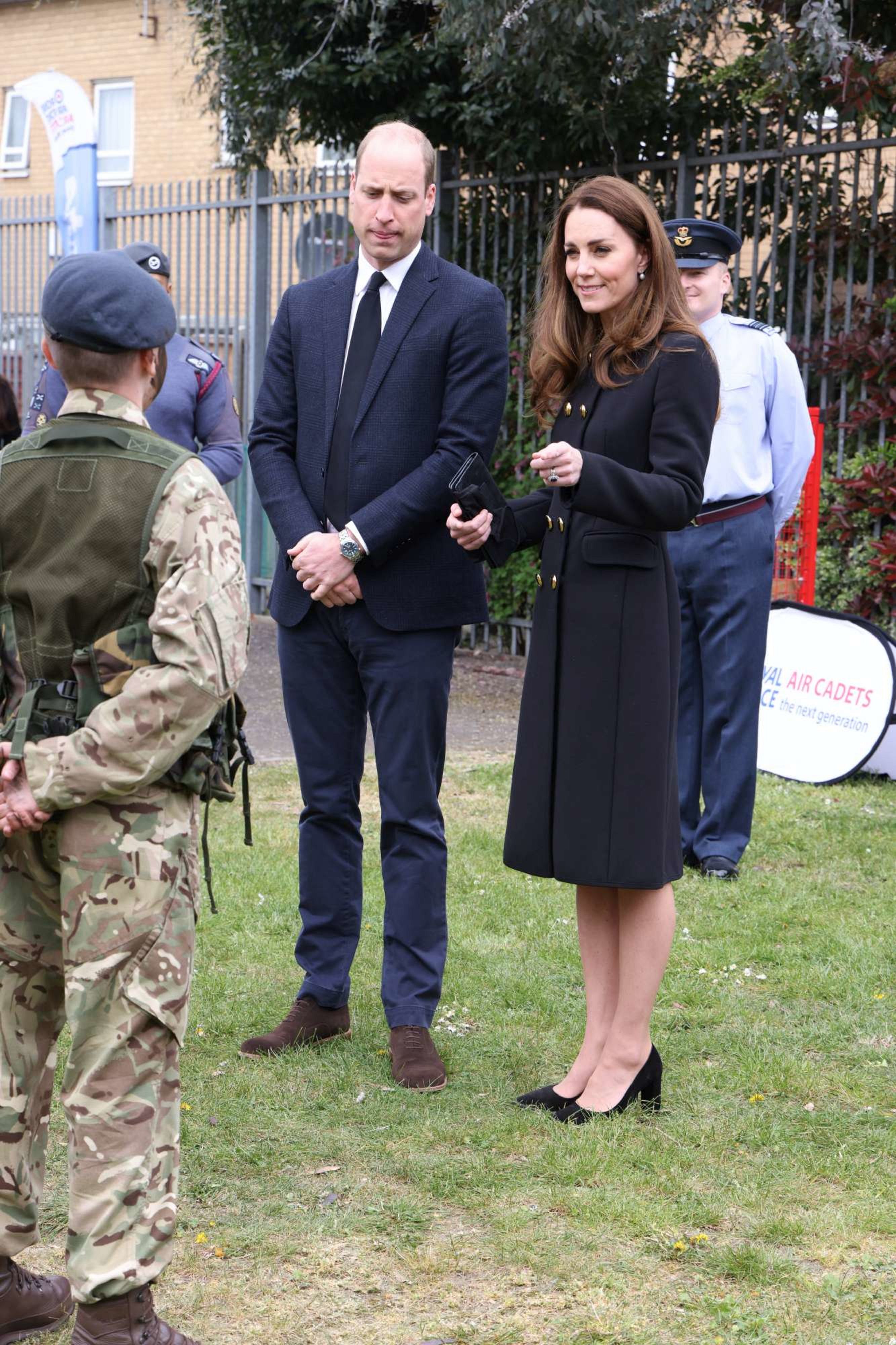 Kate e William si sono intrattenuti a parlare con gli Air Cadets dell' Air Training Corps, l'associazione militare sostenuta dalla Royal Air Force e dal Ministero della Difesa. La Middleton era sobria ed elegante con un cappottino nero al ginocchio con doppia fila di bottoni dorati. Suo marito era impeccabile in abito scuro. Entrambi hanno fatto del loro meglio per sorridere ed apparire rilassati, nonostante la stanchezza fosse evidente sui loro volti. Kate si è anche goduta l'esperienza su un simulatore di volo: ha lasciato la borsa a William e si è messa in gioco.
