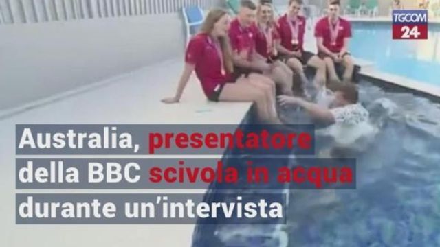 Mike Bushell è un presentatore e commentatore sportivo dell’emittente inglese BBC. Mentre si trovava in Australia in veste di inviato per il programma “BBC Breakfast”, Bushell è stato protagonista di un divertente siparietto. Il presentatore si accingeva a intervistare in diretta alcuni degli atleti vincitori dei Commonwealth Games, seduti sul bordo di una piscina, quando è scivolato in acqua scatenando le risate dei presenti. Bushell infatti non si era accorto della presenza di un piccolo gradino ed è caduto, bagnando anche il microfono che poco tempo dopo ha smesso di funzionare, costringendo i conduttori in studio ad interrompere il collegamento.