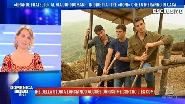 Mancano due giorni all’inizio del Grande Fratello 2018, la quindicesima edizione, che quest’anno è stata nuovamente affidata alla conduzione di Barbara D’Urso. Dal salotto di Domenica Live, la signora di Canale Cinque ha presentato al suo pubblico i tre "super boni", come lei stessa ha ribattezzato i ragazzi che entreranno nella casa e che stanno trascorrendo questi giorni nel "Casale". Simone, Filippo e Valerio hanno fatto un collegamento lampo raccogliendo gli apprezzamenti delle opinioniste presenti in studio. La più scatenata è stata sicuramente Vladimir Luxuria che alla vista dei corpi scolpiti dei tre ha esclamato divertita: "Passate uno straccio c’è la mia bava da asciugare".